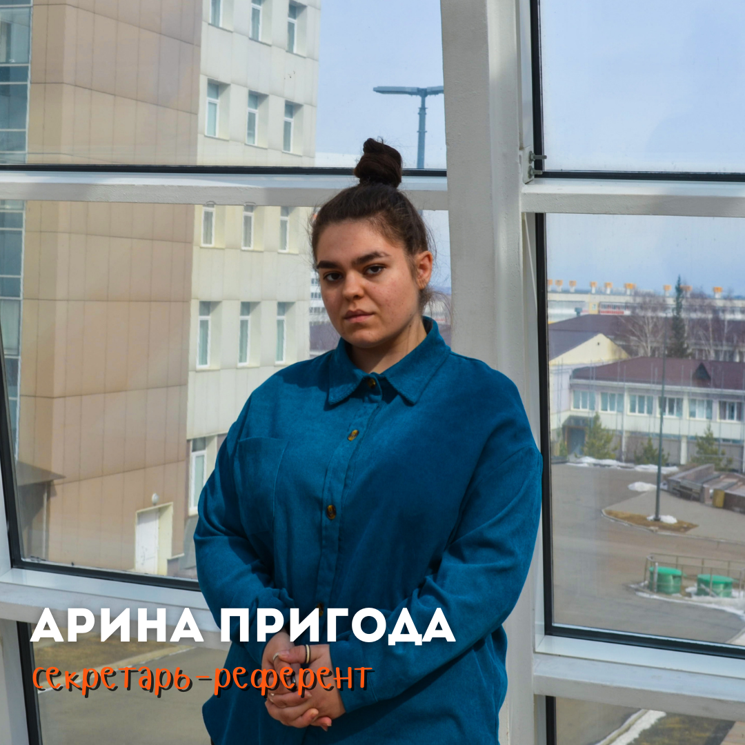 Арина одна из самых активных участников, а также староста всей группы. Ее основными задачами являются связь с экспертами и организация записи. «Договорюсь даже с тем, с кем невозможно договориться» – заявляет она. Иногда, со слов самой Арины, она выпадает из рабочего процесса, но быстро возвращается и доводит дело до конца. Этот подкаст – еще один повод для Арины погрузиться в коллективную работу, которую она считает более продуктивной. Особенность девушки в ее разносторонности: если сильно попросите, то она проведет вам экскурсию по Дивногорску, а после вы обязательно увидите ее на конференции по туризму в Москве. И нам всем очень повезло с Ариной. Ведь она главный двигатель всей группы!